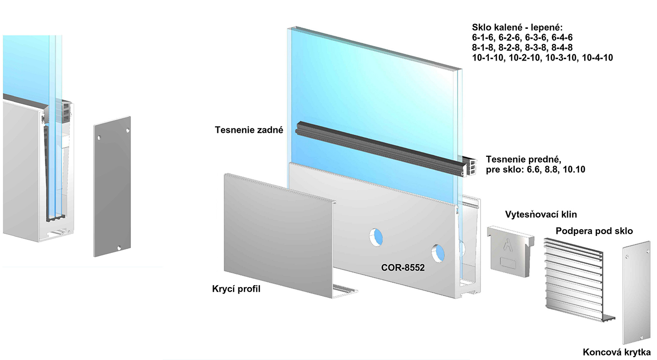 - hliníkový profil pre sklenené zábradlie – kotvenie z boku